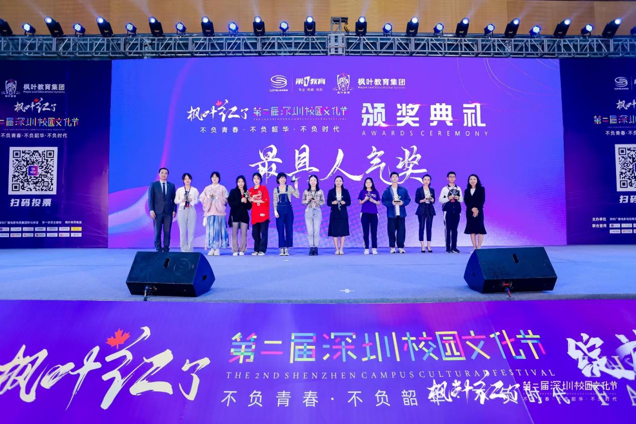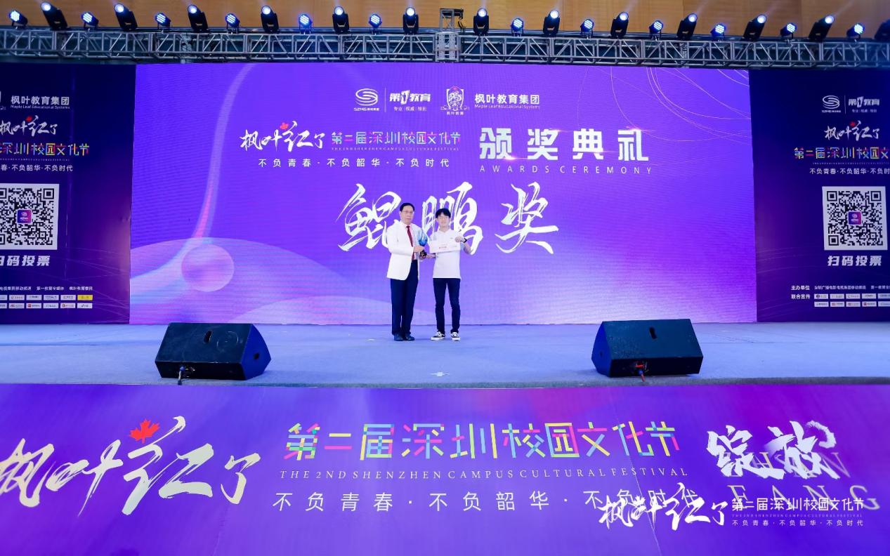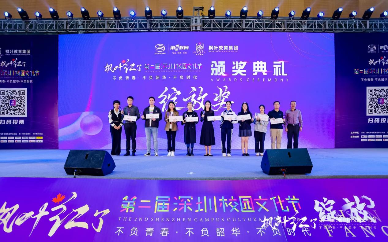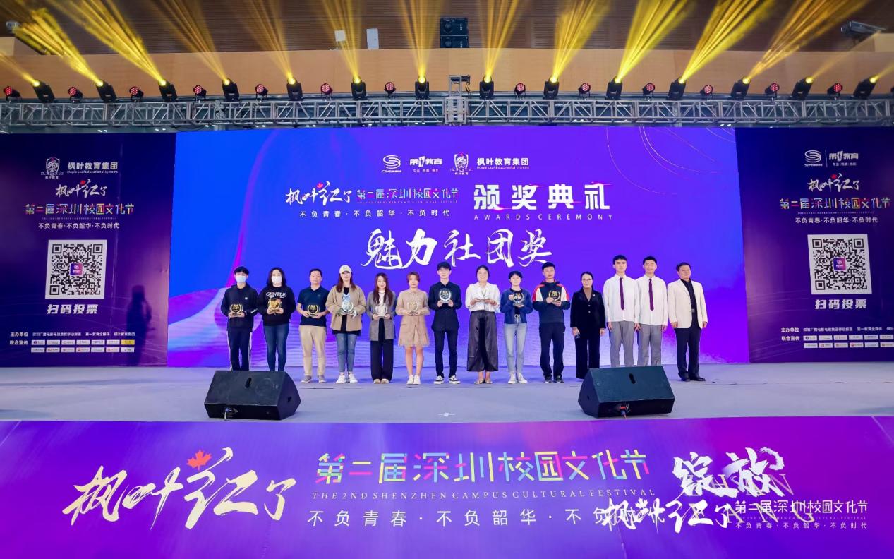 另?yè)?jù)了解,本屆活動(dòng)不以競(jìng)賽為目的,不設(shè)專(zhuān)業(yè)評(píng)委,不設(shè)專(zhuān)業(yè)分?jǐn)?shù),不設(shè)獎(jiǎng)牌等級(jí),而是以鼓勵(lì)學(xué)生全面發(fā)展、校園文化交流為初心,由觀眾們自發(fā)投票評(píng)選出魅力社團(tuán)獎(jiǎng)、優(yōu)秀指導(dǎo)老師獎(jiǎng)、鯤鵬獎(jiǎng)、綻放獎(jiǎng)、最具人氣獎(jiǎng)。記者從現(xiàn)場(chǎng)了解到,獲得本屆魅力社團(tuán)獎(jiǎng)的學(xué)校有10所,分別是:深圳市南山區(qū)文理實(shí)驗(yàn)學(xué)校(集團(tuán))《模擬聯(lián)合國(guó)社》、南山區(qū)前海學(xué)?!栋羟蜿?duì)》、深圳實(shí)驗(yàn)學(xué)校高中部《回聲合唱團(tuán)》、深圳高級(jí)中學(xué)(集團(tuán))中心校區(qū)《深高學(xué)生戲劇團(tuán)》、深圳市楓葉學(xué)校《英語(yǔ)戲劇社》、深圳市龍華中學(xué)《跆拳道空手》、深圳市蛇口育才教育(集團(tuán))育才中學(xué) 《404樂(lè)隊(duì)》、深圳市育新學(xué)校 《The best軍樂(lè)團(tuán)》、南方科技大學(xué)附屬中學(xué)《機(jī)器人隊(duì)》、深圳市藝術(shù)高中《鐘呂交響管樂(lè)團(tuán)》;獲得本屆校園文化節(jié)鯤鵬獎(jiǎng)(唯一)的學(xué)校是:南方科技大學(xué)附屬中學(xué);獲得本屆校園文化節(jié)綻放獎(jiǎng)的是9所學(xué)校,分別是:深圳市第一職業(yè)技術(shù)學(xué)校、深圳中學(xué)、深圳市藝術(shù)高中、深圳市寶安中學(xué)(集團(tuán))、深圳市第三職業(yè)技術(shù)學(xué)校、深圳市楓葉學(xué)校、深圳市龍崗區(qū)龍城高級(jí)中學(xué)、寶安區(qū)為明雙語(yǔ)實(shí)驗(yàn)學(xué)校、深圳市蛇口育才教育(集團(tuán))育才中學(xué);獲得現(xiàn)場(chǎng)最具人氣獎(jiǎng)的學(xué)校有10所,分別是:深圳市第一職業(yè)技術(shù)學(xué)校、深圳市福田區(qū)華強(qiáng)職業(yè)技術(shù)學(xué)校、深圳市第三職業(yè)技術(shù)學(xué)校、深圳大學(xué)附屬中學(xué)、紅嶺中學(xué)(集團(tuán))石廈初中部、龍崗區(qū)蘭著學(xué)校、萬(wàn)科梅沙書(shū)院、深圳市南山區(qū)文理實(shí)驗(yàn)學(xué)校(集團(tuán))、筍崗中學(xué)、寶安中學(xué)(集團(tuán));最后同時(shí)獲得本屆校園文化節(jié)優(yōu)秀指導(dǎo)老師獎(jiǎng)的學(xué)校分別來(lái)自:南方科技大學(xué)附屬中學(xué)、深圳市第一職業(yè)技術(shù)學(xué)校、深圳中學(xué)、深圳市蛇口育才教育(集團(tuán))育才中學(xué)、深圳市寶安中學(xué)(集團(tuán))、深圳市第三職業(yè)技術(shù)學(xué)校、深圳市藝術(shù)高中、深圳市楓葉學(xué)校、寶安區(qū)為明雙語(yǔ)實(shí)驗(yàn)學(xué)校、深圳市龍崗區(qū)龍城高級(jí)中學(xué)。