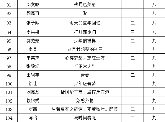 投稿后,晉級信息會在15個工作日內(nèi)公布,選手可以通過冰心文學(xué)盛典組委會的查詢系統(tǒng)進(jìn)行查詢。