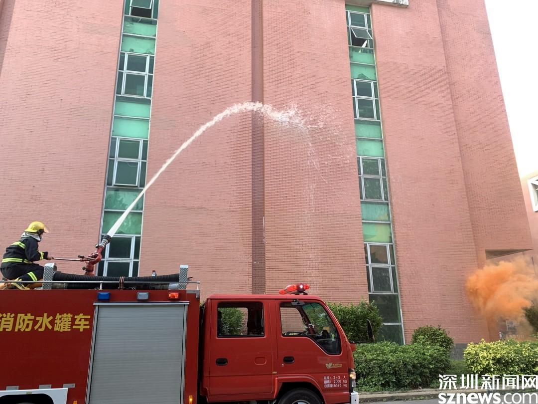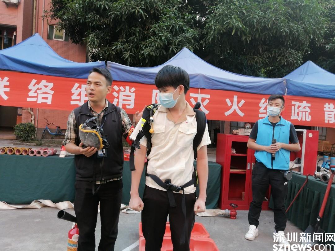 演練情景設(shè)定為工業(yè)園巡查人員發(fā)現(xiàn)火情,立刻上報并報警。隨后火警警報驟響,樓道內(nèi)冒出濃煙,疏散演練正式開始。工業(yè)園職工、居民在各組工作人員的指揮下,用口罩、衣服等捂口鼻,屈膝彎腰沿著既定的疏散路線,迅速向安全區(qū)域撤離。隨后社區(qū)消防員到達現(xiàn)場,用消防高壓水槍進行高空滅火,撲滅火災(zāi),解除警報。演練結(jié)束后,社區(qū)還組織工業(yè)園職工、居民參加安全體驗活動,學(xué)習(xí)消防救援設(shè)備的用法、進行消防結(jié)繩和滅火實操訓(xùn)練。