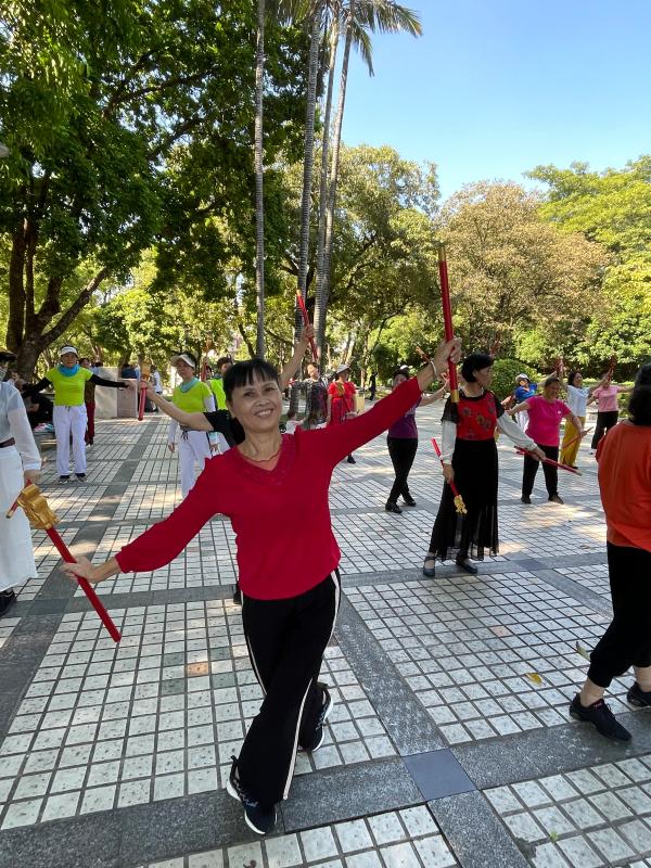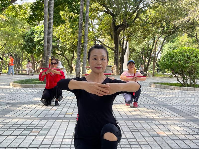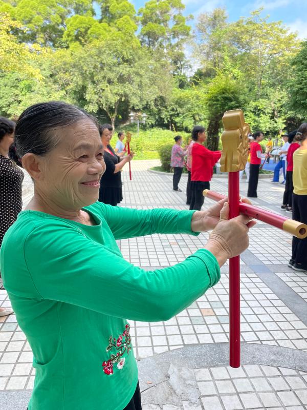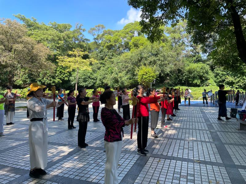 讀特客戶端·深圳新聞網(wǎng)2021年11月26日訊(記者 陳彬)這一兩個(gè)月來(lái),每天早上,有一群精氣神十足的阿姨們,手持一種舞蹈道具,在南頭古城臨中山公園的地方,非常有意思地跳著一種舞蹈,成為了南頭古城的一道風(fēng)景。在她們舞蹈時(shí),時(shí)不時(shí)會(huì)有路人走近好奇地問(wèn):阿姨,你們這是在跳一種韓國(guó)舞蹈、還是日本舞蹈?她們會(huì)指著旁邊的KT板展架說(shuō):好好看看那上頭,學(xué)習(xí)學(xué)習(xí)我們中國(guó)文化。