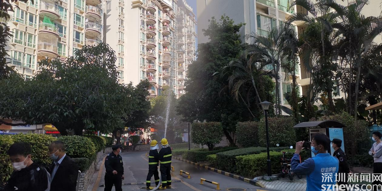 演練情景設(shè)定為巡查人員發(fā)現(xiàn)火情,第一時(shí)間向社區(qū)安全相關(guān)負(fù)責(zé)人匯報(bào),安保處立刻報(bào)警并啟動(dòng)消防應(yīng)急預(yù)案。隨后火警警報(bào)驟響,樓道內(nèi)冒出濃煙,疏散演練正式開始。居民們?cè)诠ぷ魅藛T的指揮下,用口罩、衣服等捂口鼻,屈膝彎腰沿著既定的疏散路線,迅速向安全區(qū)域撤離。隨后社區(qū)消防員趕赴現(xiàn)場,使用高壓水槍撲滅火災(zāi),解除警報(bào)。演練結(jié)束后,社區(qū)還組織居民參加安全體驗(yàn)活動(dòng)。