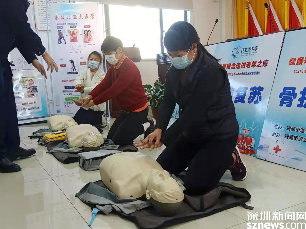 據(jù)了解,觀瀾街道有多家老年人之家、長者服務中心,為積極應對人口老齡化,滿足轄區(qū)老年人對居家急救、居家健康知識的迫切需求,街道積極開展老年醫(yī)療保健和居家急救活動,如心肺復蘇急救體驗學習、骨折包扎體驗學習、防異物梗塞體驗學習等,使老年人充分了解到生活中一些突發(fā)事件的應對方法,在保護自己的同時也能夠幫助到他人,為實現(xiàn)居民應對“突發(fā)疾病”的自救奠定良好基礎。