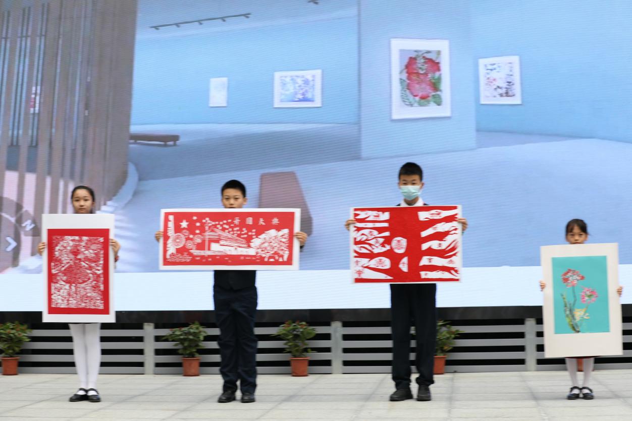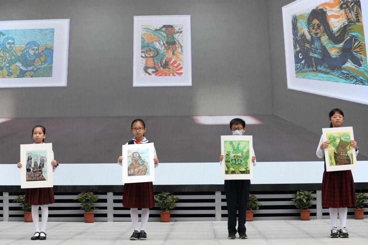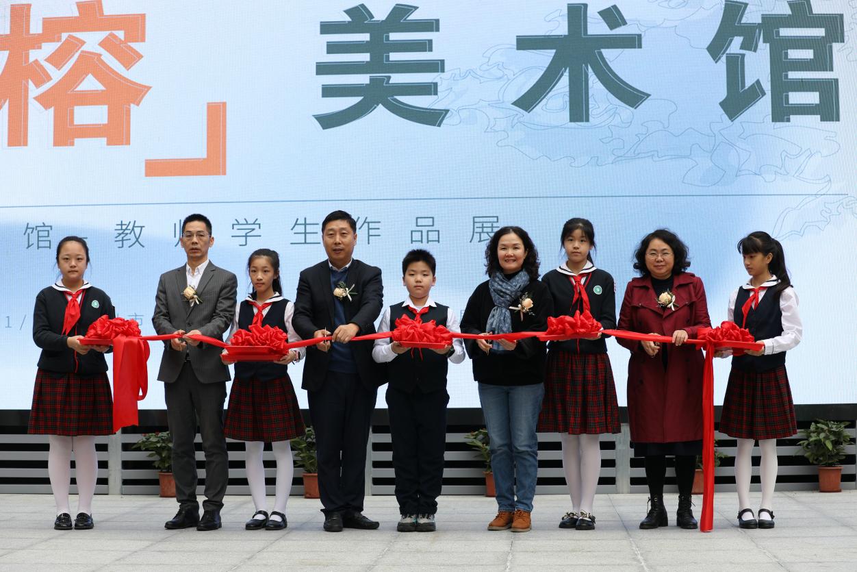 與開館和展覽同時(shí)推出的,還有“榕”美術(shù)館的云展館。云展館以新媒體形式,擴(kuò)大了展覽范圍,使得學(xué)校的美術(shù)美育成果得以向外部展示。推出之際,學(xué)校舉行了云展館的剪彩儀式。解署昱校長(zhǎng)致辭并宣布開館,福田區(qū)教科院藝術(shù)辦林影萍主任、解署昱校長(zhǎng)、劉權(quán)祥副校長(zhǎng)、姚紅霞副校長(zhǎng)為云美術(shù)館剪彩,并向全校學(xué)生贈(zèng)送了云展館資料。