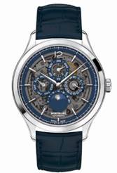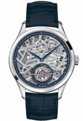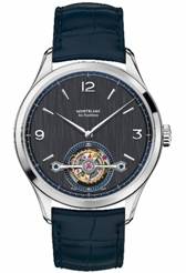 ????萬寶龍傳承精密計時系列外置框架陀飛輪超薄鏤空腕表搭配藍(lán)色劍形指針和全新藍(lán)色鱷魚皮表帶,盡顯極致優(yōu)雅。