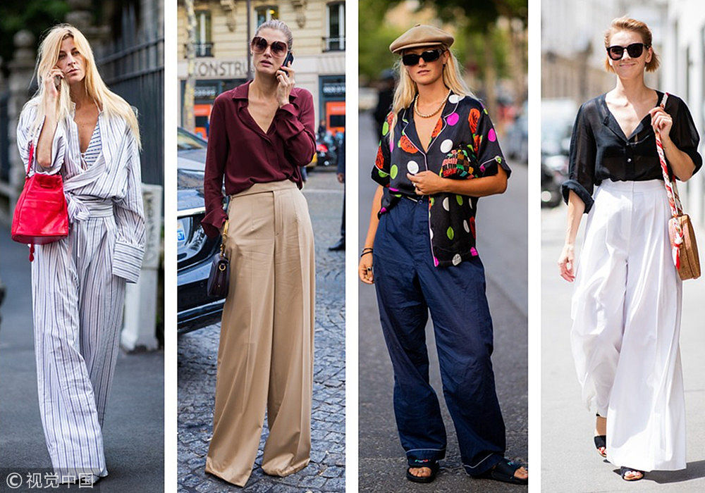 ????入秋說冷不熱,說熱不冷,想要入秋瀟瀟灑灑,襯衫+闊腿褲的套裝百試不爽,輕松拿下氣場。無論你是職場新人還是老油條!基本時髦套路輕松應對。(圖片來源:視覺中國)