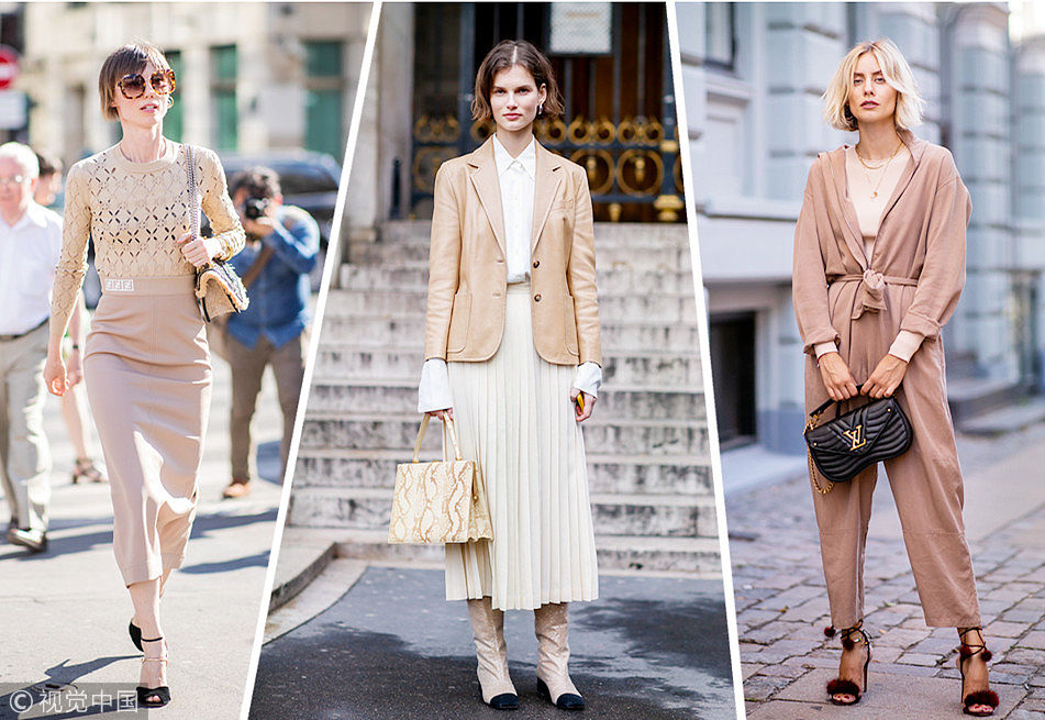 ????平時穿衣沒有女人味,不是款式問題還是顏色沒選對。高飽和色系可能與秋季不是最合適的,但淡漠色一定能讓初秋柔情四射。飽和度較低的色系有種與身俱來的高級感,即便是普通的T恤只要換上淡漠色,人人都是溫柔小女人。 (圖片來源:視覺中國)