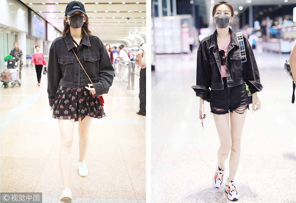 ????娜扎 VS 秦嵐撞衫:Alexander Wang黑色牛仔夾克。 (圖片來源:視覺中國)