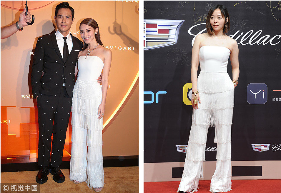 ????陳凱琳 VS 張靚穎撞衫:Nicole+Felicia 2019春夏系列流蘇抹胸連體褲。 (圖片來源:視覺中國)