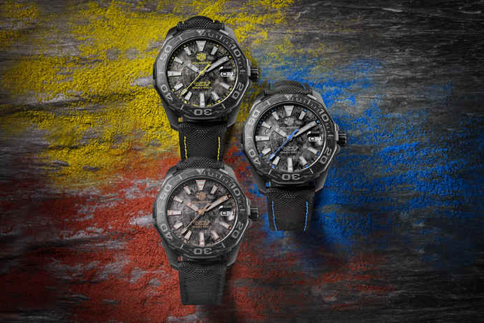 ????全新泰格豪雅Aquaracer競潛系列碳纖維腕表發(fā)布三個版本,分別以藍(lán)色、黃色和玫瑰金色元素點(diǎn)綴,別具一格。新款腕表采用41毫米PVD黑色鍍層鈦金屬表殼和碳質(zhì)表圈,表盤以碳纖維效果裝飾。這款堅固耐用的腕表更重要的特性是輕盈靈巧,而在全黑外觀上巧妙地以彩色點(diǎn)綴,盡顯優(yōu)雅時尚。