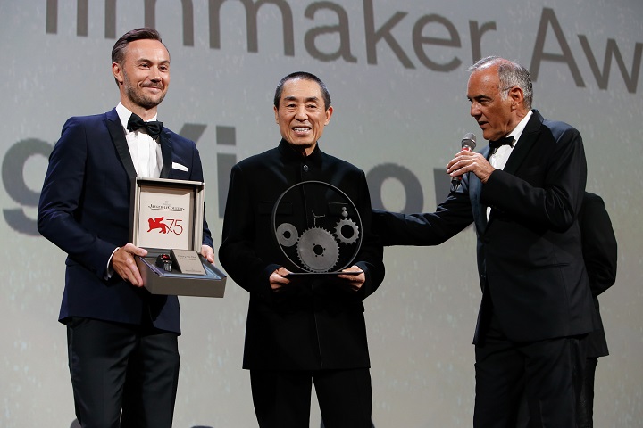 ????就此次張藝謀獲獎,威尼斯國際電影節(jié)主席阿爾貝托?巴貝拉(Alberto Barbera)表示:“張藝謀不僅是當代影壇的杰出導演之一,而且他不拘一格的作品,呈現(xiàn)了電影作為世界語言的演變過程,同時象征著中國影壇的蓬勃發(fā)展。作為當代電影的先驅(qū)人物,張藝謀擅于以獨特而出眾的視覺美學風格,凸顯劇本、故事和豐富的中華文化。張藝謀的電影處女作《紅高粱》(1987年)即令他蜚聲國際,此作品改編自諾貝爾文學獎得主莫言的小說。電影的成功使他逐漸成為備受注目的中國“第五代導演”(包括陳凱歌、田壯壯等)代表人物之一。他那糅合優(yōu)雅的拍攝手法于多樣的敘事結(jié)構(gòu)的才華讓他屢獲重要獎項的認可,當中包括憑《秋菊打官司》(1992年)及《一個都不能少》(1999年)而奪得的兩座金獅獎。在世紀交接之際,他憑借經(jīng)典武俠作品《英雄》(2002年)第三次獲得奧斯卡最佳外語片提名,成為打造全球影壇巨作的標志性人物之一。2008年,他更是擔任北京奧運會的開幕式和閉幕式的總導演,之后亦指導多部有美國影壇巨星參演的大作。隨著《影》(2018年)于第75屆威尼斯國際電影節(jié)的全球首映,張藝謀正式回歸武俠世界,繼續(xù)展現(xiàn)其作品中獨有的優(yōu)雅風格和非凡創(chuàng)意?!?/p>