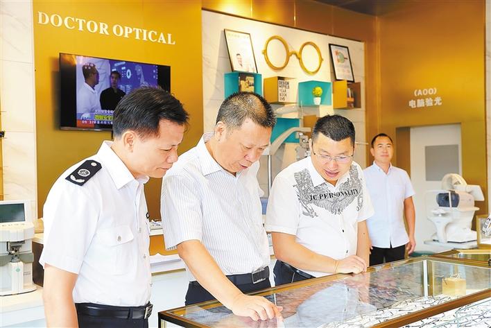 龍崗區(qū)政府黨組成員鐘春平(左二)帶隊到嘉寶國際眼鏡城調(diào)研眼鏡產(chǎn)業(yè)相關(guān)情況。