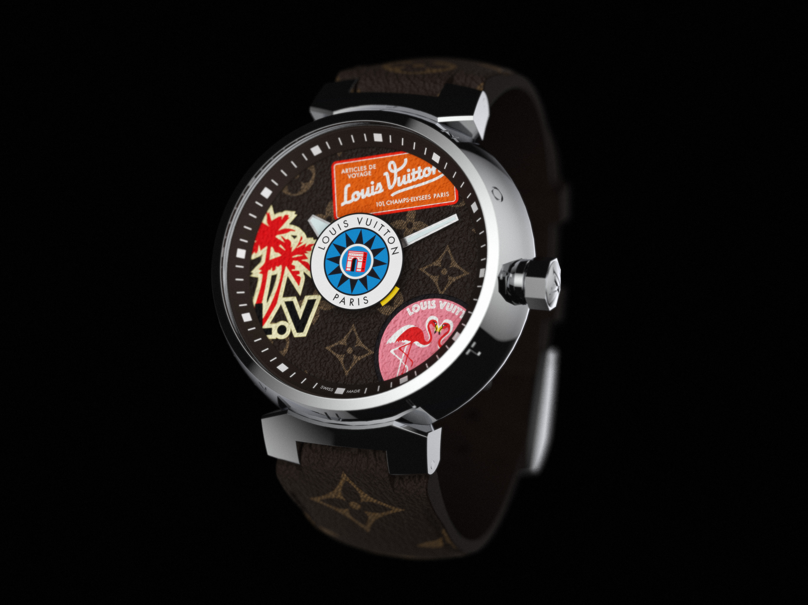 如今,它們成為全新Tambour表款中表盤與表帶的裝飾元素。此款搭載石英機芯的精鋼腕表系列共推出四種直徑尺寸:28、34、39.5與41.5毫米。Tambour World Tour腕表系列的表盤均由路易威登La Fabrique du Temps高級制表工坊精心制作,對品牌兩大經(jīng)典帆布花紋——Monogram帆布與Damier Graphite格紋——進(jìn)行了忠實復(fù)刻。四款全新腕表所配表帶采用路易威登創(chuàng)新專利系統(tǒng),無需借助工具即可自由快速替換。