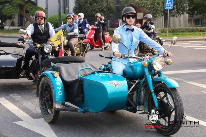 向永恒的風格與慈善事業(yè)致敬,復(fù)古紳士們身著考究,跨騎復(fù)古摩托,猶如20世紀50年代倫敦大街上的咖啡騎士,享受著沖刺與征服的快感。作為 DGR"正裝紳士騎行"活動的全球官方合作伙伴,真力時連續(xù)三年于北京和上海同步開啟雙城復(fù)古騎行派對,在活動現(xiàn)場亦為腕表和摩托車愛好者們提供了展示自己復(fù)古情懷,享受自由與突破的“真力時時刻”。