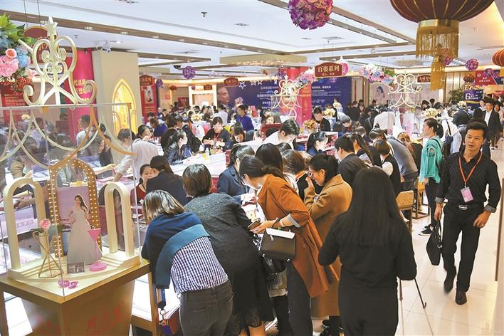 記者近日走訪(fǎng)了周大生深圳訂貨會(huì)。時(shí)值展會(huì)最后一天,現(xiàn)場(chǎng)仍有不少訂貨商在挑選款式。深圳訂貨會(huì)坐落在羅湖區(qū)田貝花園三樓,面積達(dá)2400多平方米,展出鉆飾、黃金、K金、翡翠、珍珠等產(chǎn)品。