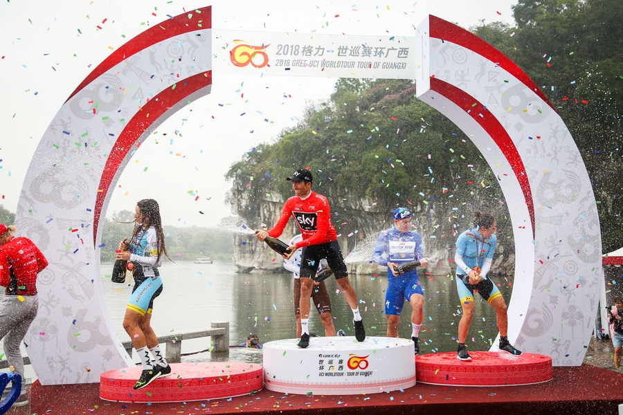 “世巡賽?環(huán)廣西”是亞洲地區(qū)備受關(guān)注的公路自行車賽事,吸引了包括環(huán)法冠軍天空車隊(duì)(英國)、環(huán)意冠軍太陽網(wǎng)車隊(duì)(德國)等18支世界著名車隊(duì)前來參賽,結(jié)合廣西令人驚艷的自然環(huán)境風(fēng)光,吸引了全世界的目光。環(huán)廣西世巡賽全程由南向北,以多種形式嚴(yán)格考驗(yàn)騎手們的體力、騎行技術(shù),以及團(tuán)隊(duì)合作能力。10月21日下午的桂林城市賽段中,快步地板車隊(duì)小將法比奧?雅克布森(Fabio Jakobsen)最后時(shí)刻反超博拉-漢斯格雅車隊(duì)沖刺手帕斯卡?阿克曼(Pascal Ackermann),取得個(gè)人在本屆格力“世巡賽?環(huán)廣西”上的第二個(gè)勝場。而來自天空車隊(duì)的詹尼?莫斯孔(Gianni Moscon)在經(jīng)歷了6個(gè)比賽日超過900公里的騎行后最終奪冠,拿下了的環(huán)廣西世巡賽的總冠軍??偝煽儊喖拒姺謩e是博拉-漢斯格雅車手菲利克斯?格羅斯查特內(nèi)爾(Felix Grosschartner)以及阿斯塔納車手謝爾蓋?切爾涅斯基(Sergei Chernetski)。