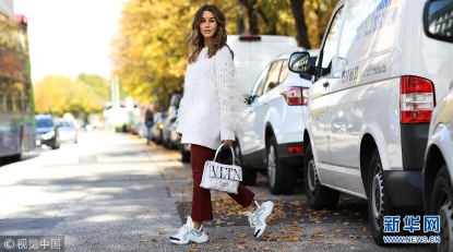 時(shí)尚博主街拍:毛衣+手袋+老爹鞋 簡(jiǎn)約靚麗