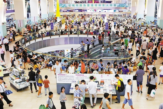 深圳領(lǐng)全民閱讀風(fēng)氣之先,自2000年起就開展了以讀書月為代表的全民閱讀活動。十七年來,無處不在的閱讀文化活動正改變著深圳。2016年深圳居民年均閱讀紙質(zhì)圖書8.94本,年閱讀電子圖書為10.47本,都遠(yuǎn)遠(yuǎn)超過全國平均值;持圖書證讀者數(shù)量占全市常住人口比重、年人均借書量、家庭藏書量、人均購書量均穩(wěn)居全國第一。
