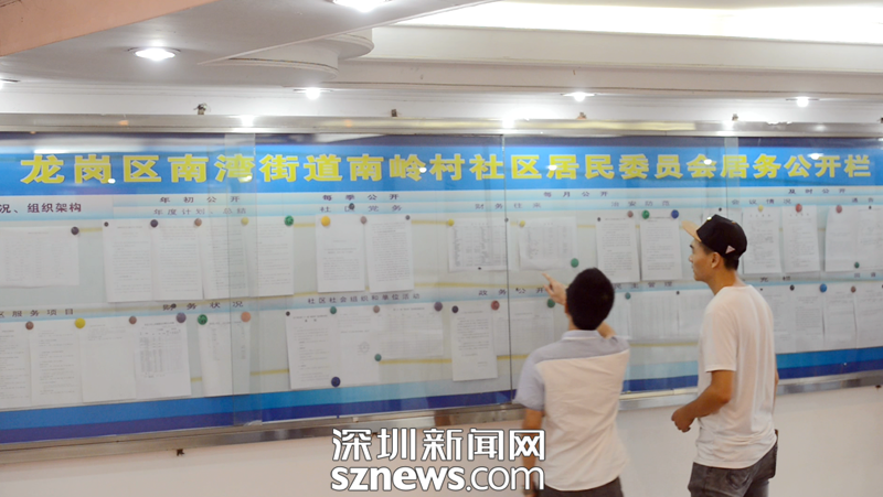 如今南嶺村社區(qū)居委會(huì)的公開(kāi)欄