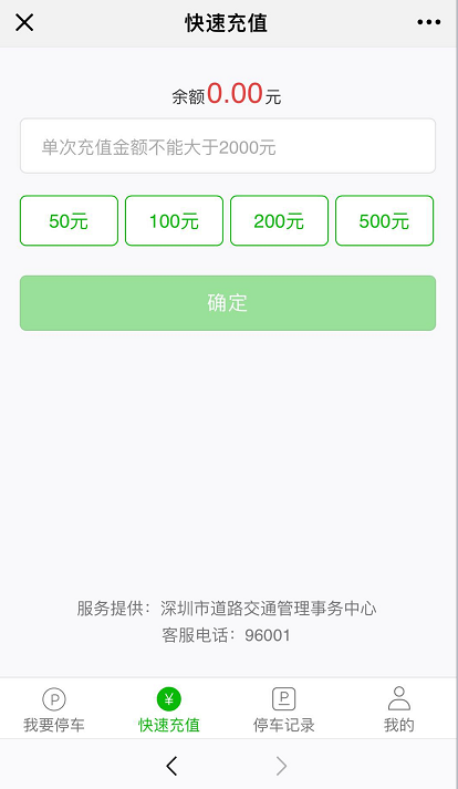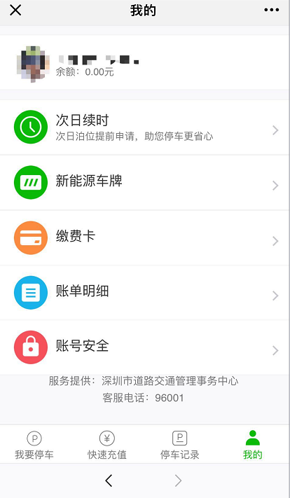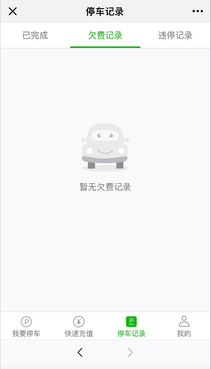 在這個界面還有“快速充值、停車記錄、我的”等導(dǎo)航入口