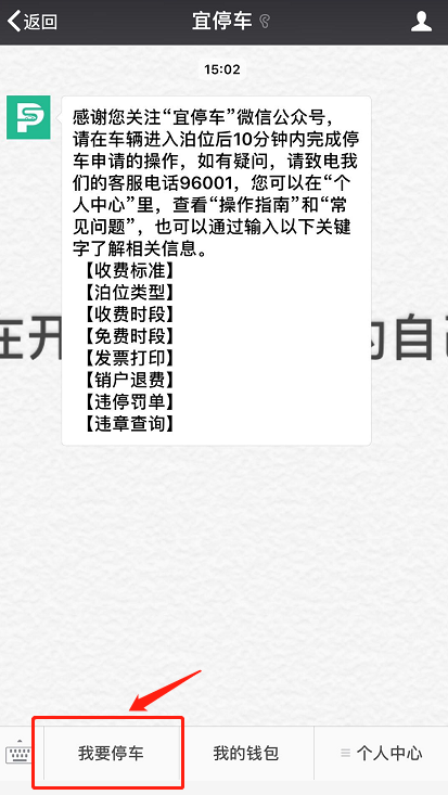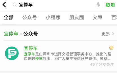 2、添加微信公眾號“宜停車”