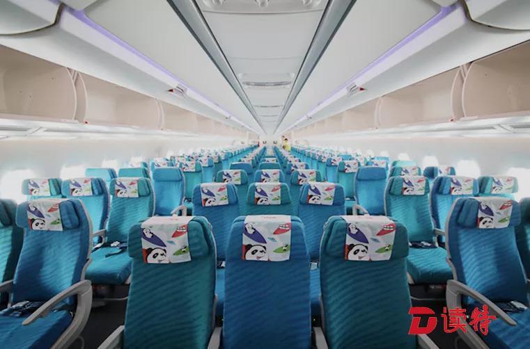 除了色彩繽紛的熊貓彩繪之外,機艙內(nèi)的熊貓元素隨處可見,仿佛把大熊貓基地搬上了天。