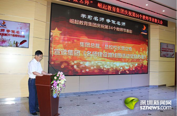 深圳新聞網(wǎng)訊 (記者 曹園芳)2018年9月10日,崛起教育集團(tuán)在崛起實(shí)驗(yàn)中學(xué)舉行慶祝第34個(gè)教師節(jié)暨表彰大會(huì)。崛起教育集團(tuán)董事局主席林良浩、集團(tuán)旗下各學(xué)校領(lǐng)導(dǎo)、優(yōu)秀教師代表、教職工代表,以及深圳市寶安區(qū)教育局副局長、寶安區(qū)教育科學(xué)研究院院長、寶安區(qū)教育局民辦教育管理科科長、寶安區(qū)民辦教育協(xié)會(huì)秘書長、寶安區(qū)教育局第一學(xué)區(qū)教育辦主任、寶安區(qū)教育局第三學(xué)區(qū)教育辦主任等來自社會(huì)各屆的領(lǐng)導(dǎo)、嘉賓出席了大會(huì)。