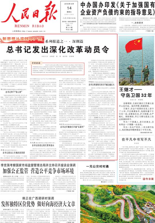 人民日?qǐng)?bào)今起推出“新思想從實(shí)踐中產(chǎn)生”系列報(bào)道,通過(guò)實(shí)地采訪(fǎng),追溯習(xí)近平新時(shí)代中國(guó)特色社會(huì)主義思想的實(shí)踐軌跡。系列報(bào)道開(kāi)篇之作《總書(shū)記發(fā)出深化改革動(dòng)員令》今天在頭版頭條隆重推出,全文轉(zhuǎn)載如下: