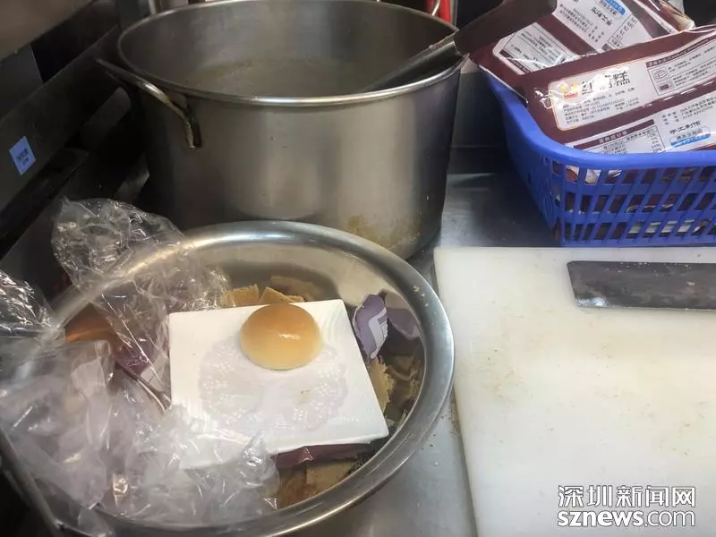 切糕區(qū)域用臉盆裝垃圾,執(zhí)法人員建議設加蓋垃圾桶