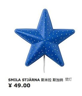 2013年12月,宜家決定召回這批自1999年以來(lái)一直在店內(nèi)銷(xiāo)售的壁掛式燈具。這批被召回的燈具包含八種設(shè)計(jì)類(lèi)型:包括藍(lán)星、黃月亮,粉紅花、白花、紅心、綠蟲(chóng)、藍(lán)貝殼和橙色海馬。