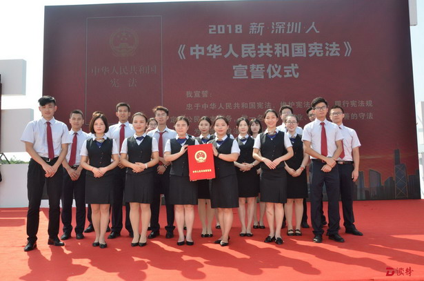 深圳新聞網(wǎng)訊 “我宣誓:忠于中華人民共和國憲法,維護憲法權(quán)威,履行憲法規(guī)定的公民基本義務(wù),做一名愛國、敬業(yè)、誠信、友善的守法市民,為深圳建設(shè)法治中國示范城市努力奮斗!”