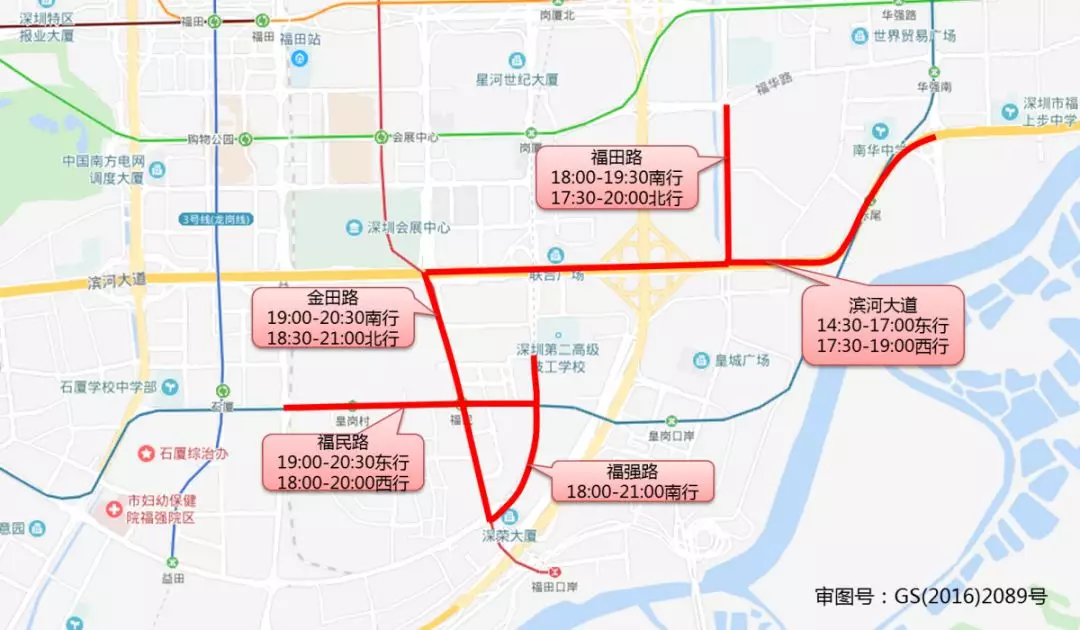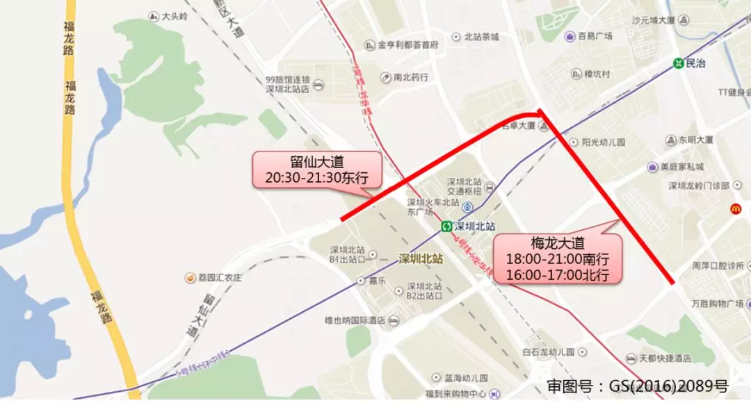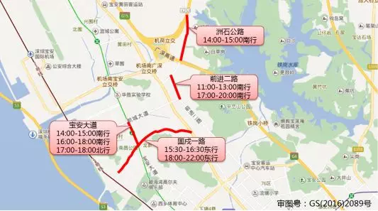 寶安大道(14:00-15:00南行、16:00-18:00南行、17:00-18:00北行)