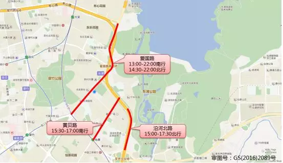 黃貝路(15:30-17:00南行)、沿河北路(15:00-17:30北行)