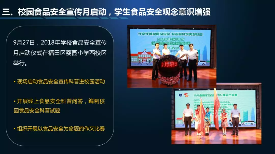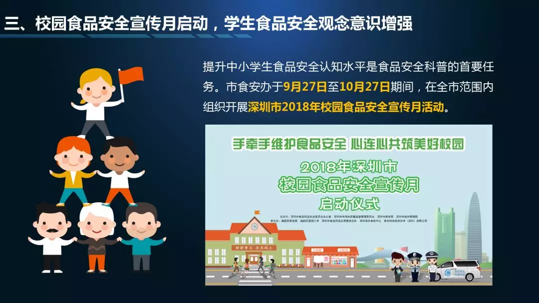 第一個(gè)“3”指“九號(hào)查酒”節(jié)前專項(xiàng)行動(dòng)、校園食品安全宣傳月、深圳市食藥志愿者總隊(duì)開展打擊非法售賣活禽專項(xiàng)執(zhí)法行動(dòng)等情況通報(bào);