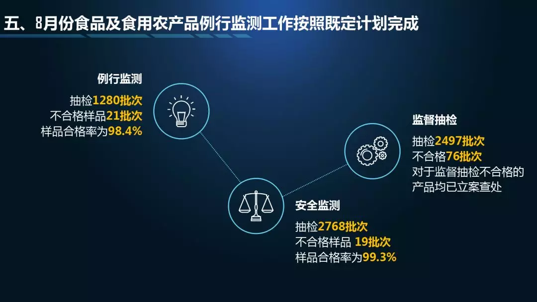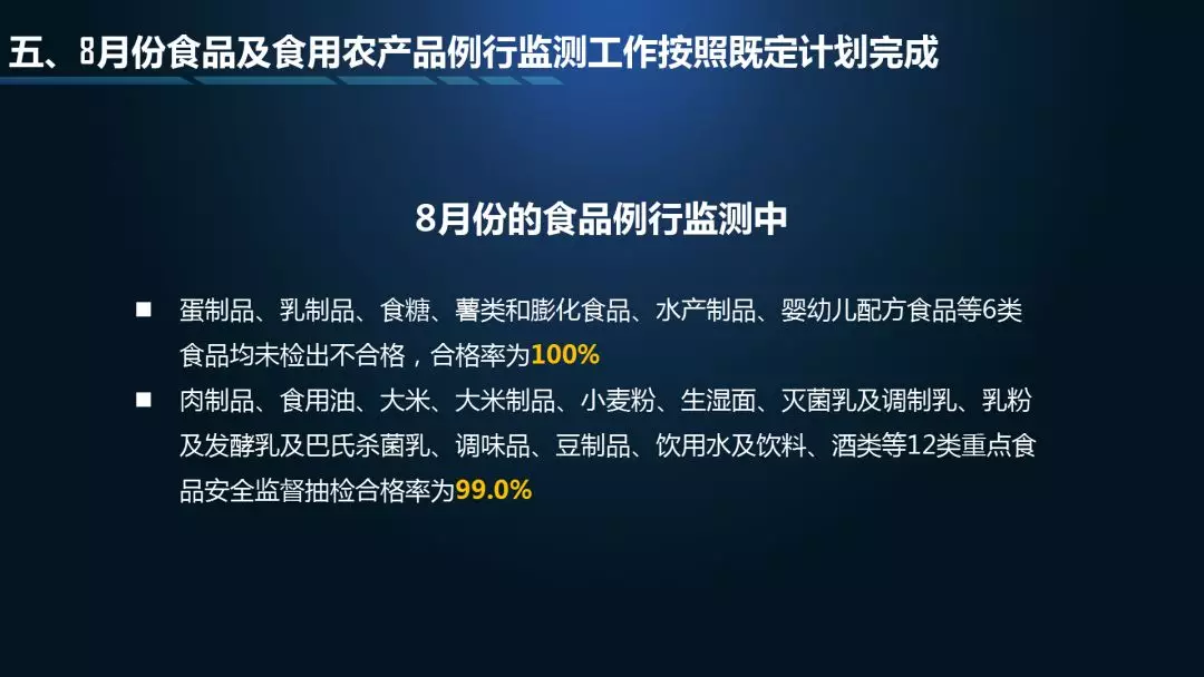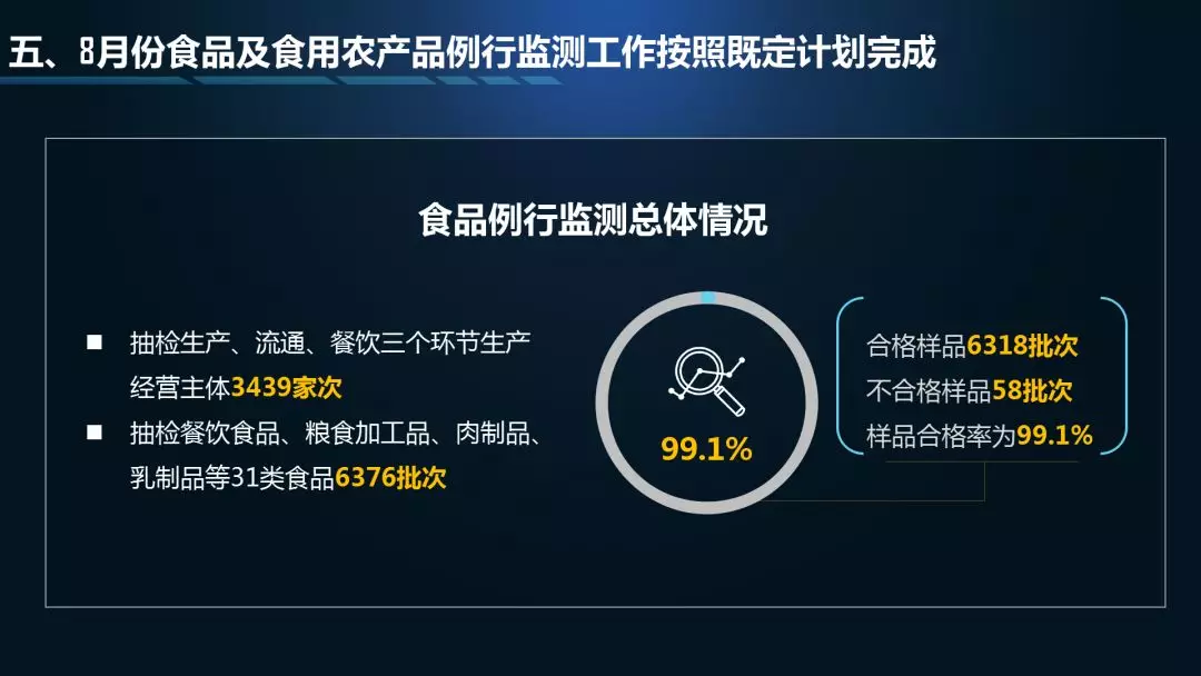 8月份食品及食用農(nóng)產(chǎn)品例行監(jiān)測(cè)工作按照既定計(jì)劃完成