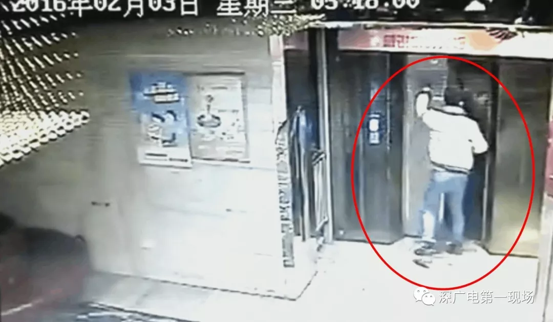 這名男子也是從遠處飛奔向電梯一腳就踹開了廂門,然后不小心踏空掉下了電梯井。