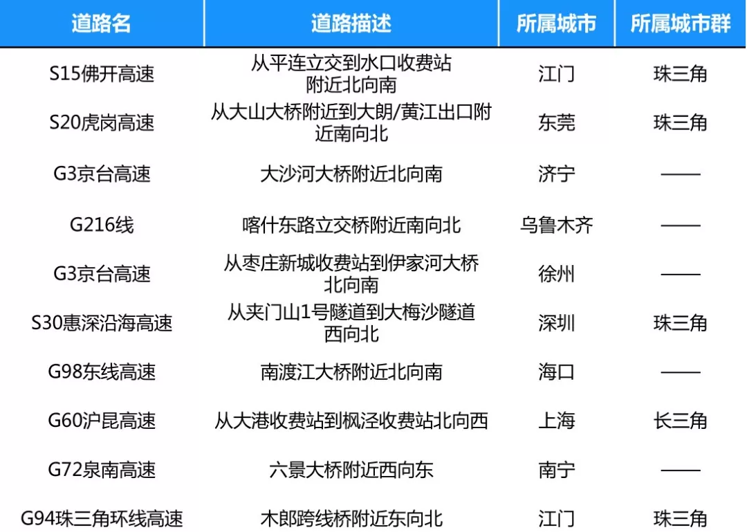 全國(guó)十大節(jié)日擁堵路段