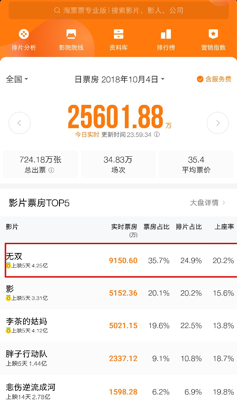 截止10月5日凌晨,《無(wú)雙》累計(jì)票房4.25億
