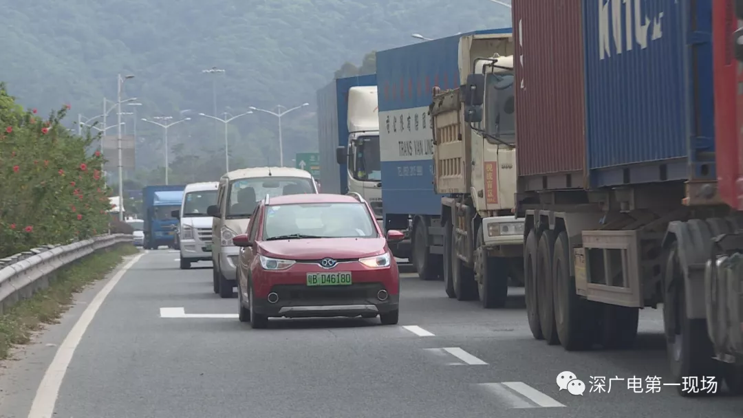 從梅觀路進(jìn)梅林關(guān)往西方向,轉(zhuǎn)南坪快速路的輔道,是一條對貨車開放的路段。本來出口有兩條車道,而最近這兩車道變成了單車道,導(dǎo)致路況十分擁堵。