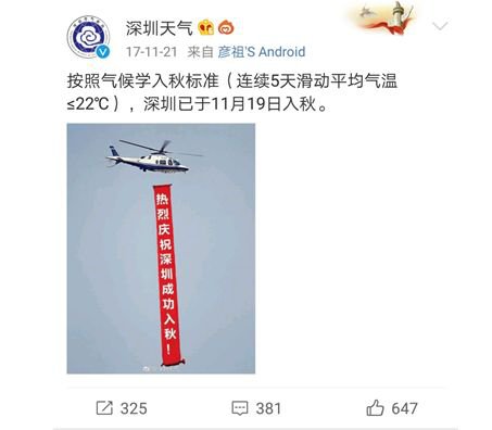 雖然深圳積極嘗試了入秋,但這場弱冷空氣并不妨礙深圳入秋失敗!因為按氣候學劃分標準:以5天滑動平均氣溫穩(wěn)定 ,22 ℃才是秋季的開始。深圳平均入秋時間在11月3日,去年更是在11月19日才入秋成功。
