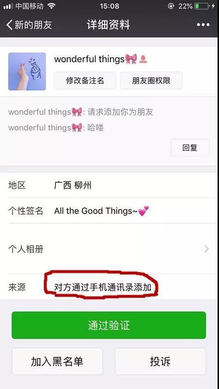 或者 " 通過手機通訊錄 " 添加的申請,實際上是騙子使用一種軟件,把經地下渠道收集到的眾多手機號碼自動存入自己的手機通訊錄,然后由微信自動匹配發(fā)出好友申請,迷惑性極強。