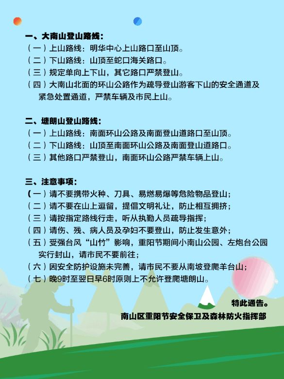 南山區(qū)重陽(yáng)節(jié)登山通告