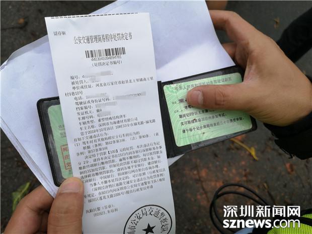 深圳交警對(duì)泥罐車司機(jī)開(kāi)出罰單:罰款100元扣2分