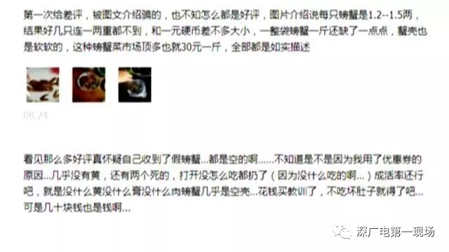 除了短斤缺兩、收到死蟹等,還有消費(fèi)者稱,在電商平臺上買了大閘蟹禮品券,提貨時卻遇到賣家的推脫,根本提不到蟹。為此業(yè)內(nèi)人士表示,消費(fèi)者在購買大閘蟹禮券時,要時刻"提防",小心落入不良商家虛假宣傳的套路!