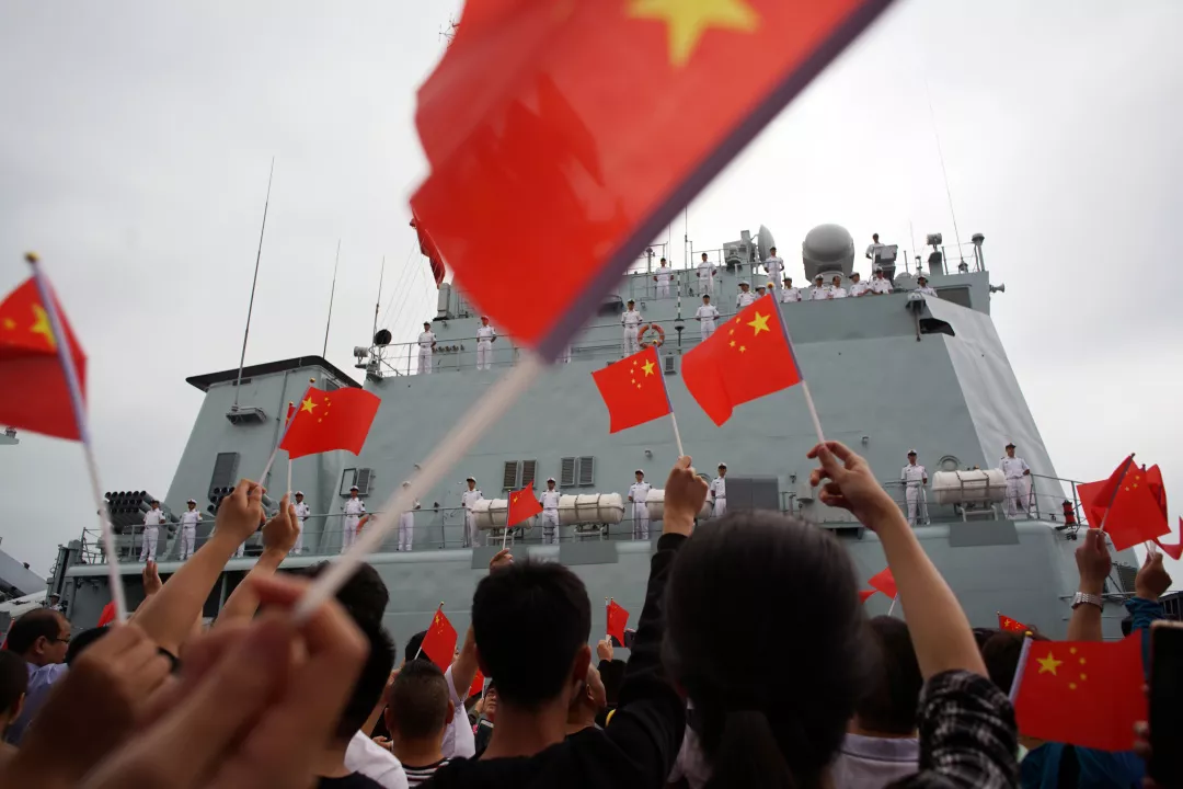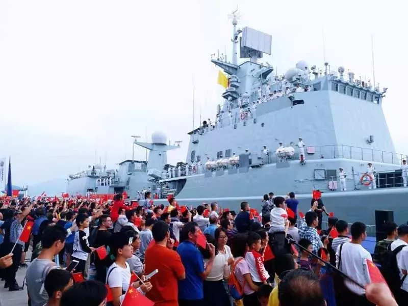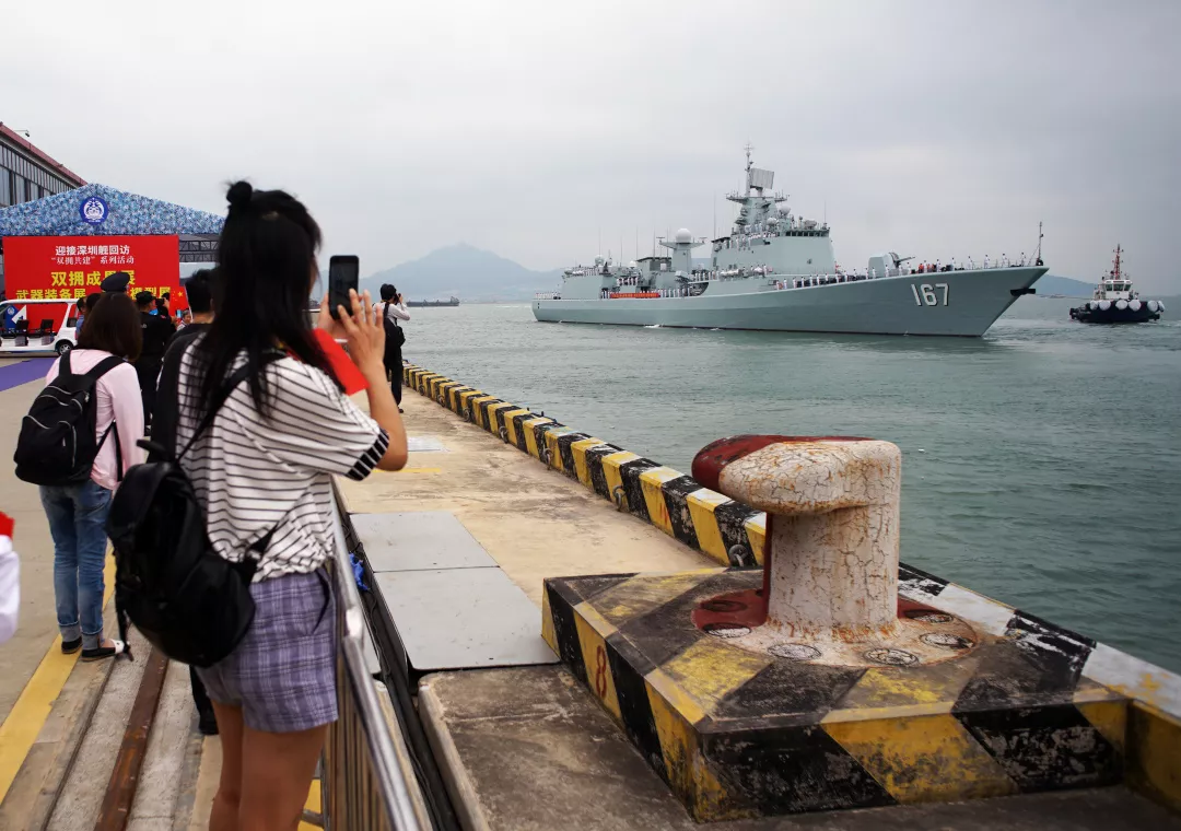 ▲深圳艦結束為期4天的訪深行程返回湛江母港,數(shù)百市民自發(fā)歡送10月20日下午3時許,蛇口郵輪母港碼頭早已聚滿了自發(fā)前來為深圳艦送行的數(shù)百名市民群眾。碼頭上,市民揮舞著五星紅旗,高呼:“歡迎深圳艦再回來!”艦艇上面,全體海軍官兵站立艦舷向市民敬禮,隨著一聲長長的汽笛聲,海軍深圳艦艦艏犁開海面,拖著長長的尾跡,帶著深圳第二故鄉(xiāng)人民的殷殷離別之情,起航駛向湛江母港。