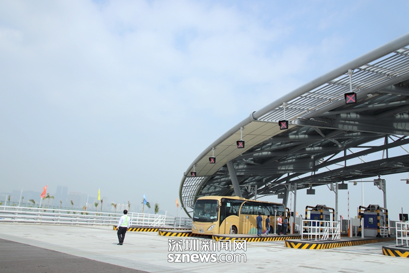 一輛穿梭巴士經(jīng)過港珠澳大橋珠海收費站