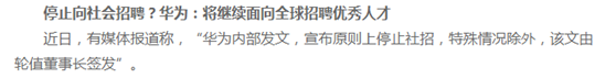 網傳華為宣布停止社會招聘了