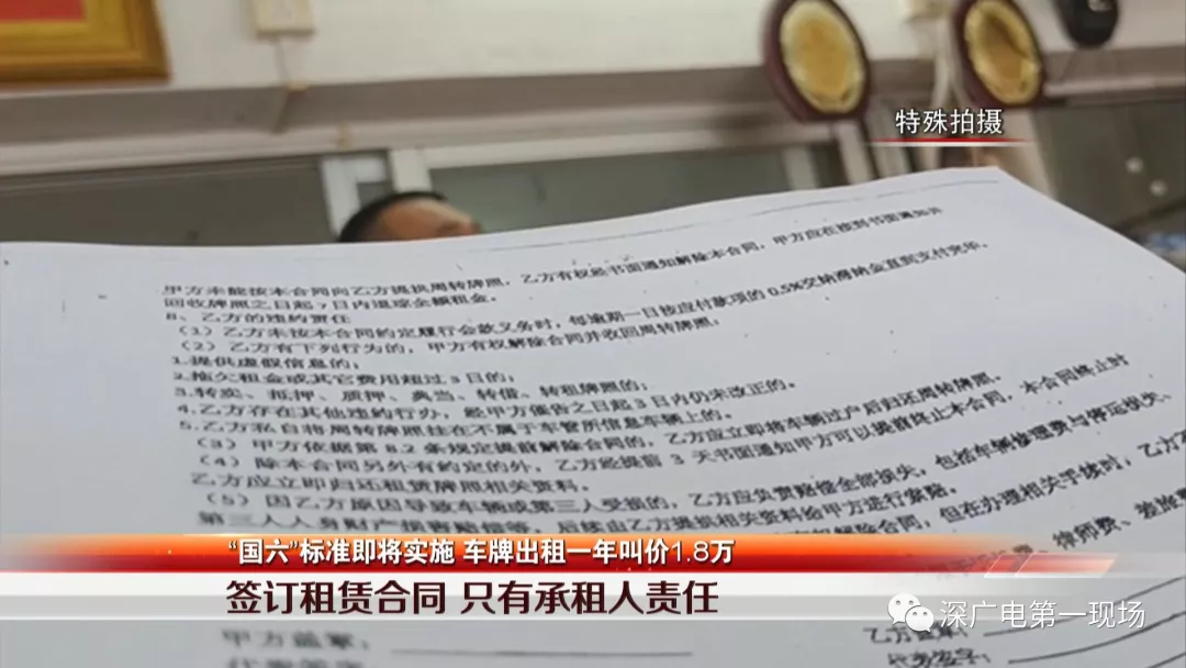 記者調(diào)查發(fā)現(xiàn),租深圳車牌成了很多外地車主,應(yīng)對(duì)“國六”標(biāo)準(zhǔn)落地的方法之一。所謂的租深圳牌,就是將名下的車登記在有深圳車牌指標(biāo),還沒有購車的人名下。