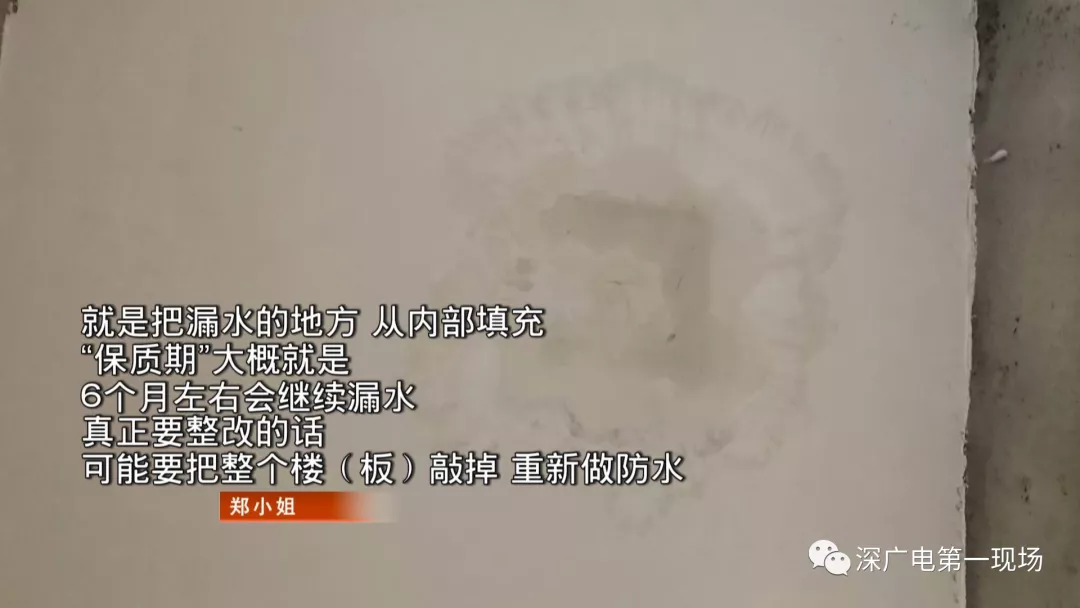 鄭小姐說(shuō),自己的擔(dān)心并非多余。因?yàn)樵谂c開(kāi)發(fā)商工程部的人交涉中,鄭小姐發(fā)現(xiàn),今年6月,她的房屋就因滲水做過(guò)一次修復(fù)。