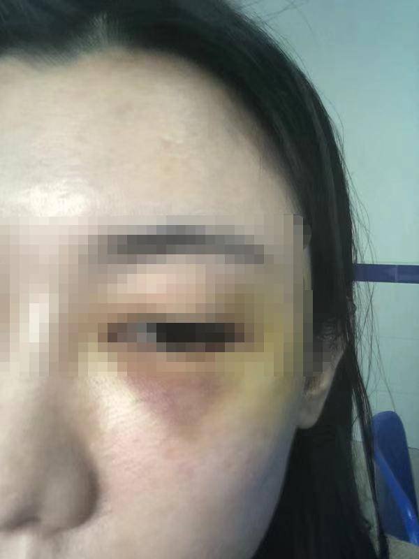根據(jù)照片顯示,李小姐左眼下有一塊明顯淤青的部位,她表示,這是對方用手機尖銳部反復砸她臉部所受到的傷。因為臉部受傷,目前她只能暫停工作。
