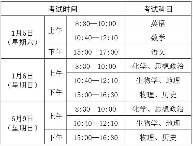 據(jù)了解,1月考試科目為語(yǔ)文、數(shù)學(xué)、英語(yǔ)、思想政治、歷史、地理、物理、化學(xué)和生物學(xué)等9科,6月考試科目為思想政治、歷史、地理、物理、化學(xué)和生物學(xué)等6科。